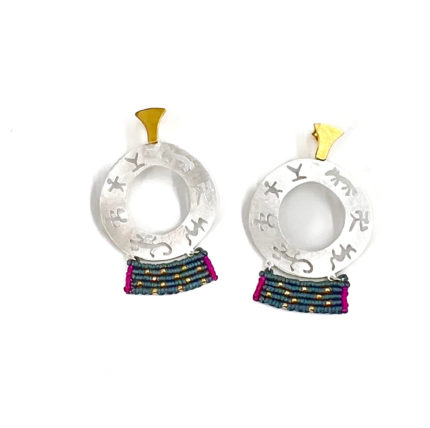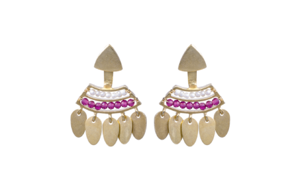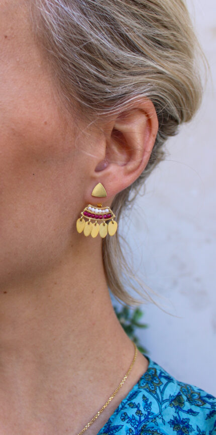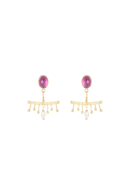 Earrings with Thulite stones, Fresh Water Pearls and Silver 925