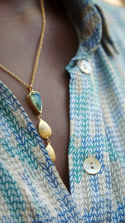 Necklace with Fuschite Stones and Goldplated Silver 925