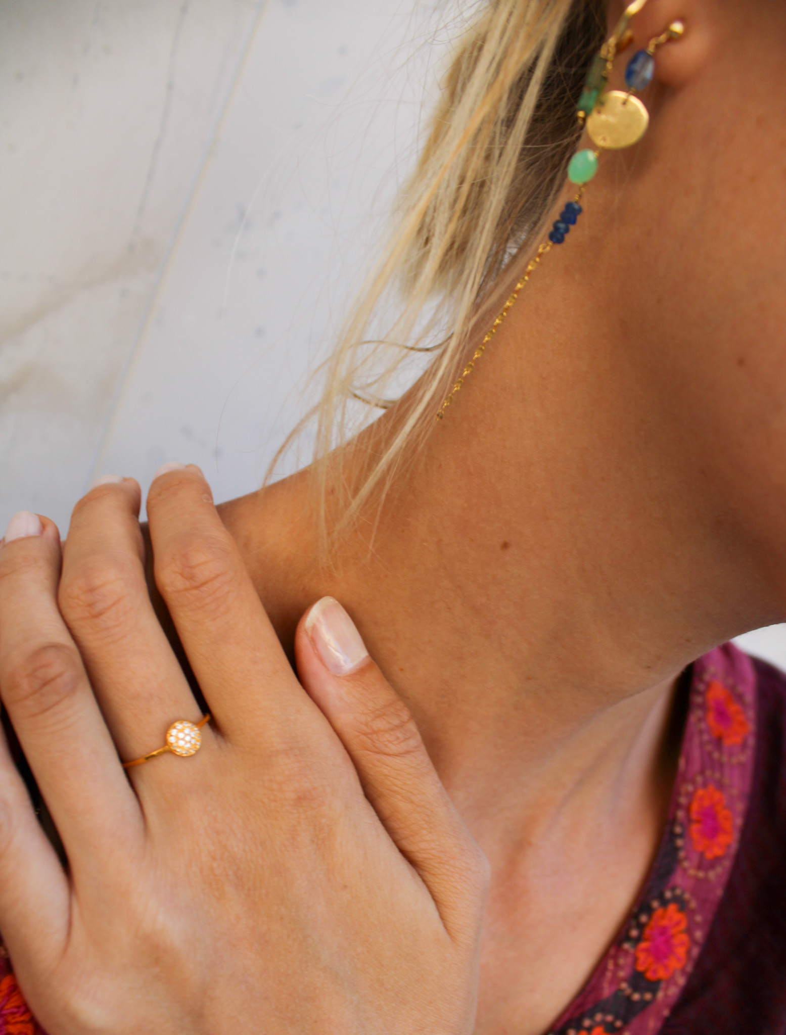 Our golden selection contains hand-picked delicate and timeless designs made in Greece. This ring is made of 14K gold with many small zircons.