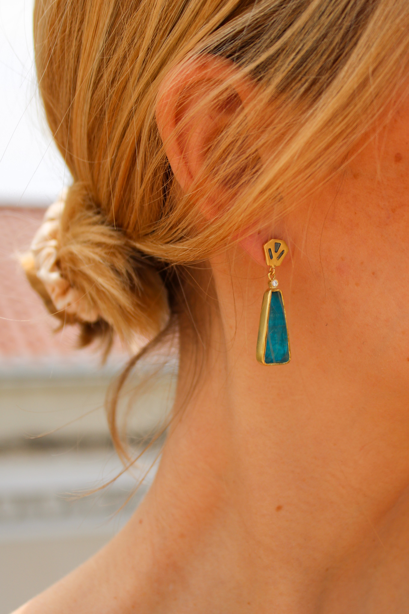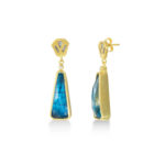 A new selection has arrived at Vergina Gallery! The finest quality stones that you would find in a silver setting. This artist combines strong straight lines in a minimalistic frame giving a place for nature to shine with her wonderful stones. Perfect balance between design and nature. These earrings are made of gold-plated silver 925 together with apatite stones.