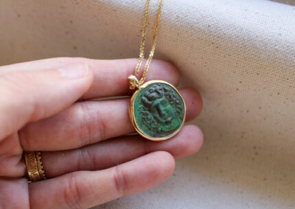 Heritage Selection- Handcarved Turquoise Coin Ring with Solid Gold 1.300,00 € – 1.720,00 €Price range: 1.300,00 € through 1.720,00 €