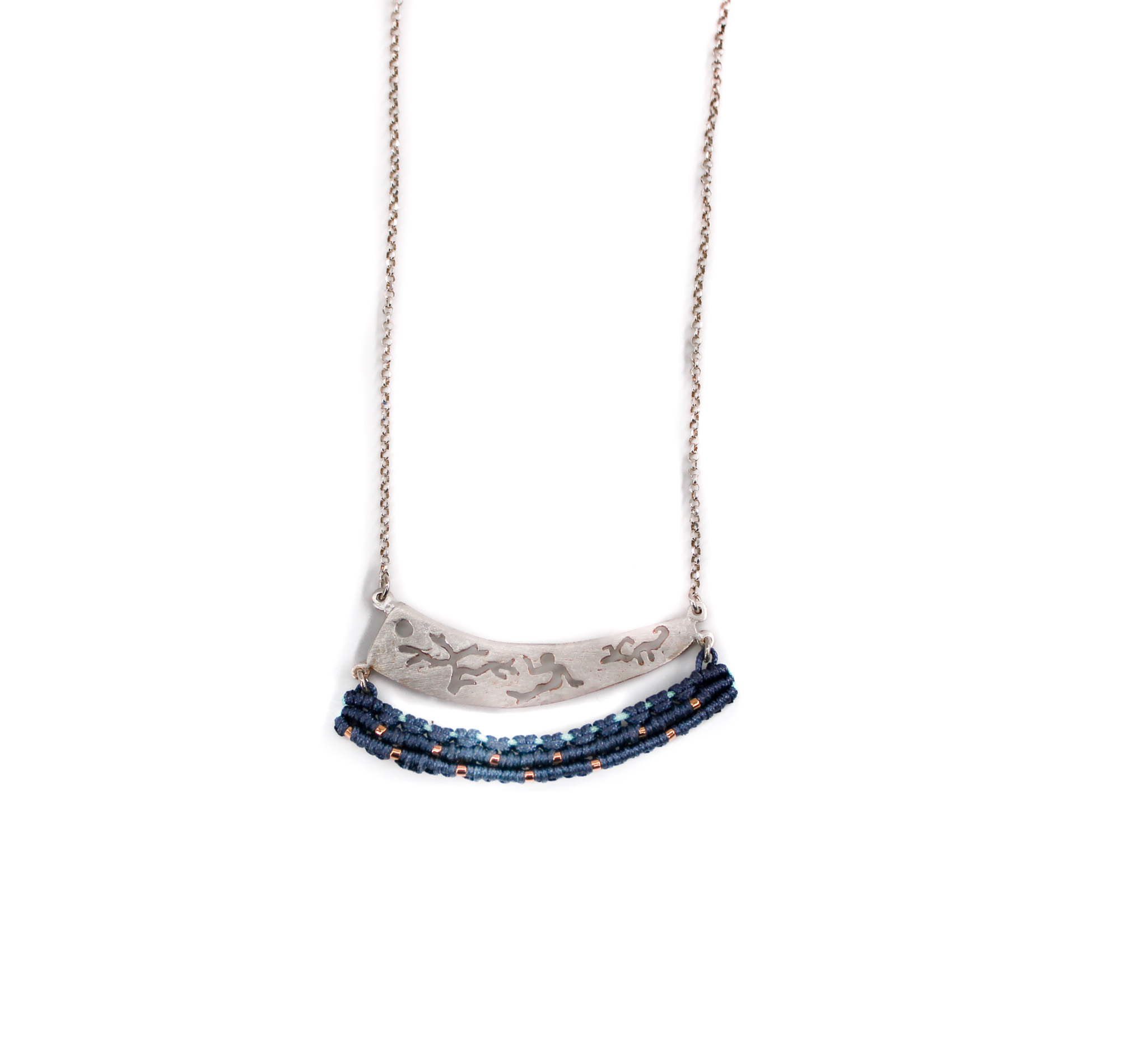 Our new addition is the popular Macramé selection! This artist’s hand knit wonderful earthy colors, with silver 925 parts, carrying ancient cave messages. The overall impression is joyful, eccentric, and fresh!