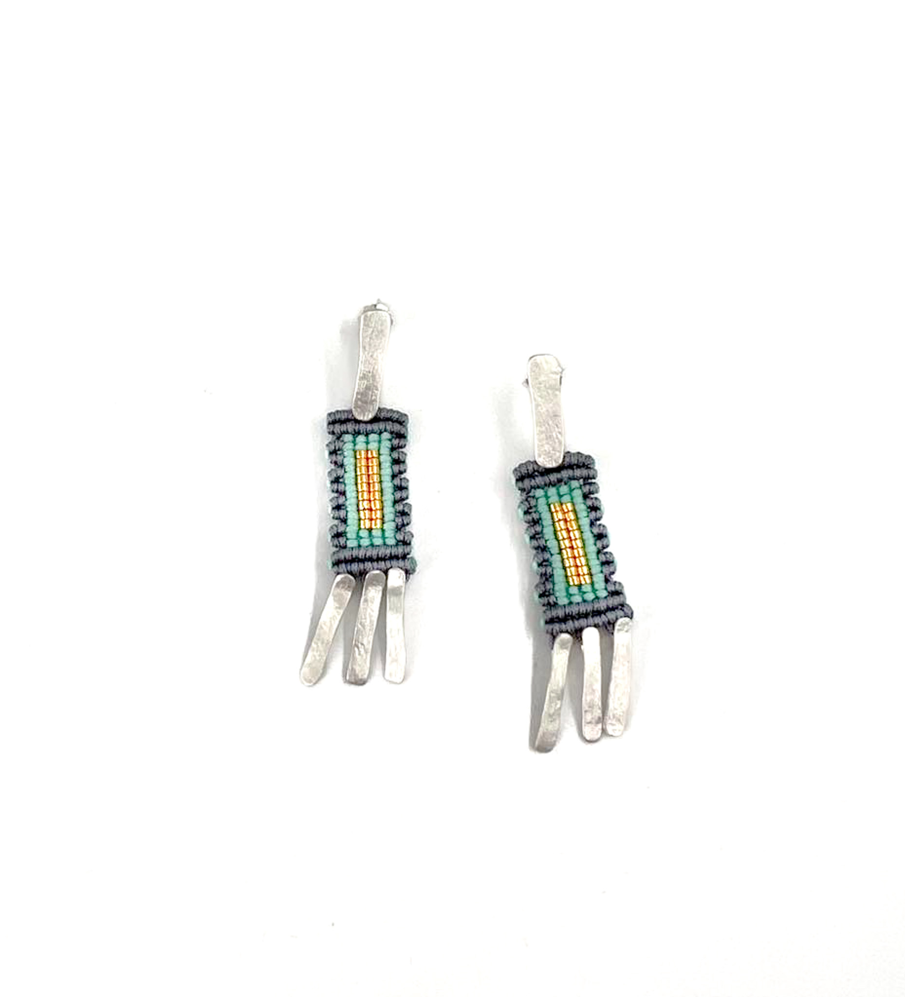 Our new addition of the popular Macramé selection! This artist’s hand knit wonderful earthy colors, with silver 925 parts, carrying ancient cave messages. The overall impression is joyful, eccentric, and fresh!