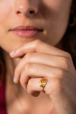 Our golden selection contains hand-picked delicate and timeless designs made in Greece. 14 k solid gold this ring portrays a beautiful branch of an olive tree, which is the symbol of Athens! According to the myth, goddess Athina gifted an olive tree to the people of Athens. An offering symbolizing fruitfulness and peace.