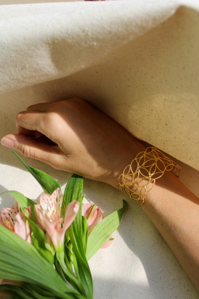 This fantastic statement bracelet are made of 14-karat solid gold, made exclusively with hand tools.