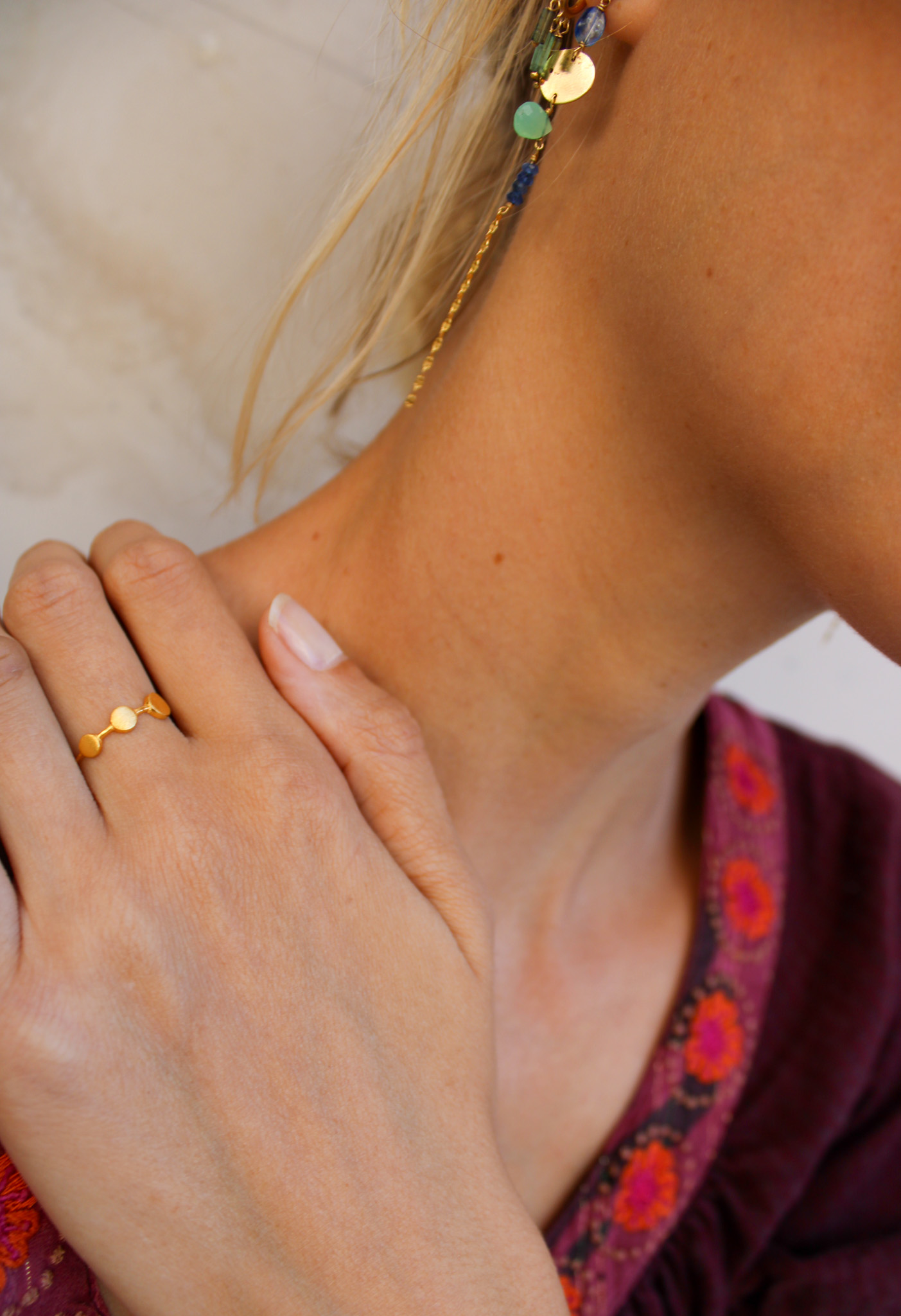 Our golden selection contains hand-picked delicate and timeless designs made in Greece. This ring is made of 14K gold creating a classical Byzantine-inspired pattern with small dots.