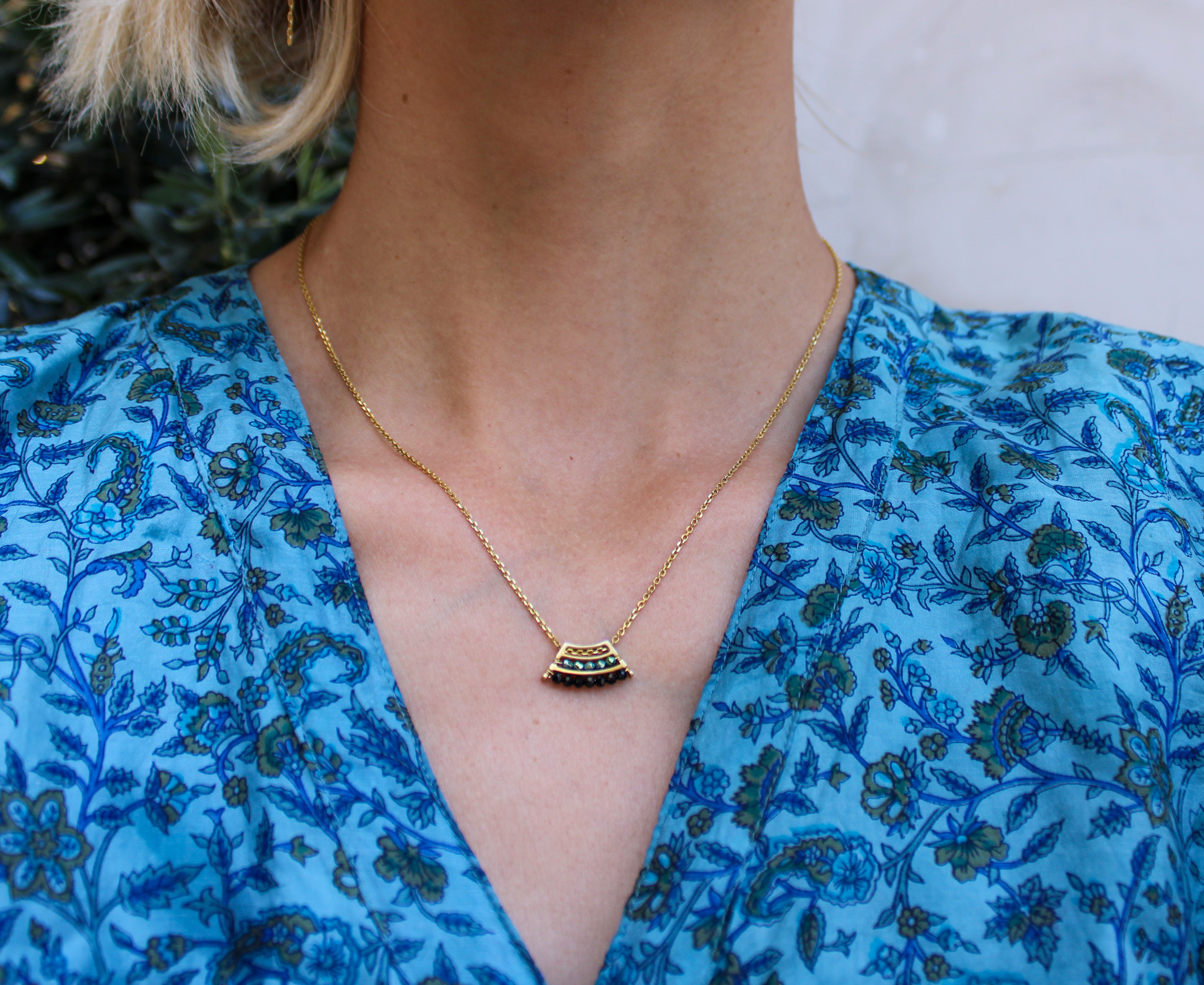 This necklace is made of gold-plated silver 925 and semiprecious stones of your choice.