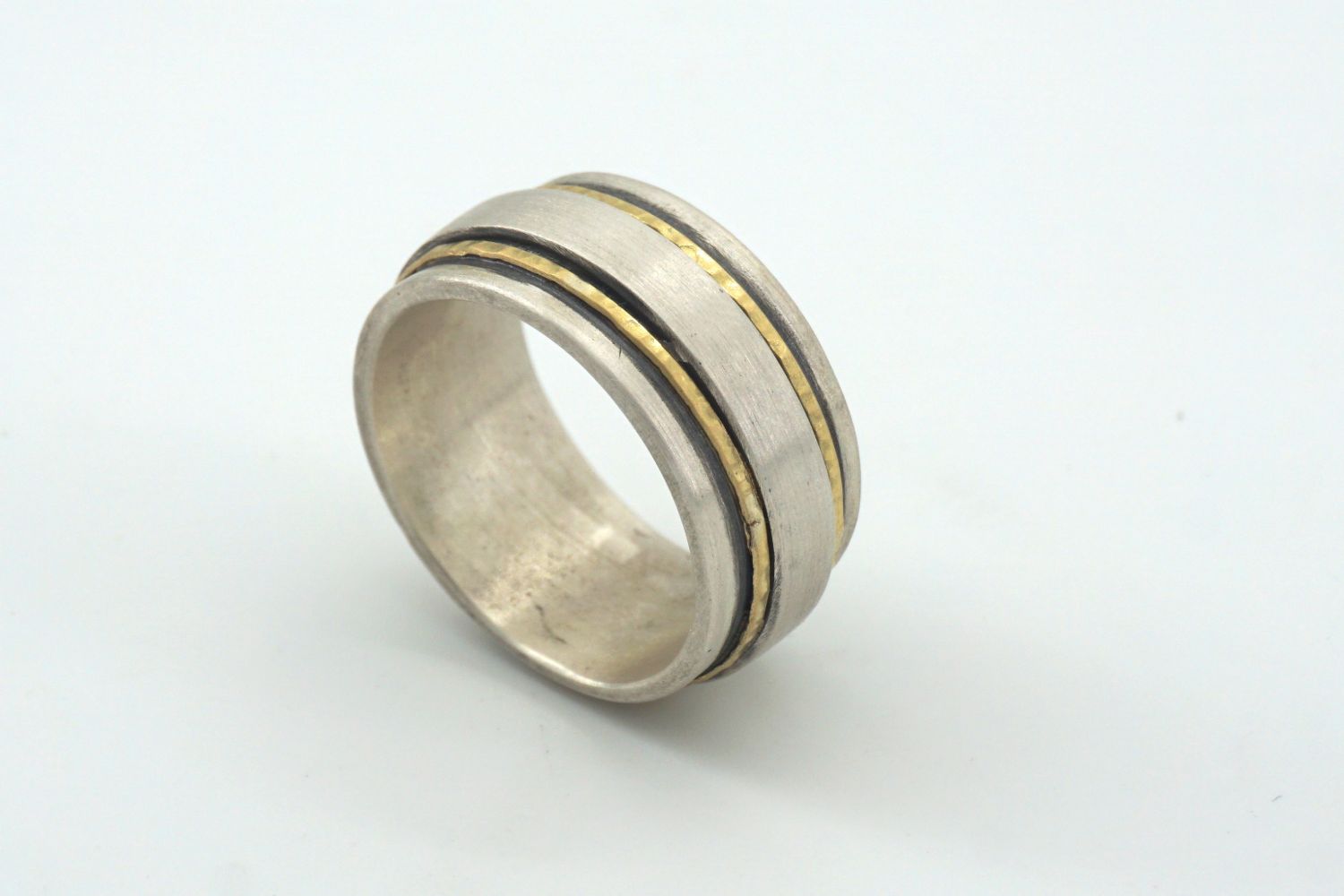 An elegant matte ring in Silver 925 with stripes of 18k solid gold together with oxidized silver.Hand crafted by one of our favourite greek designers.